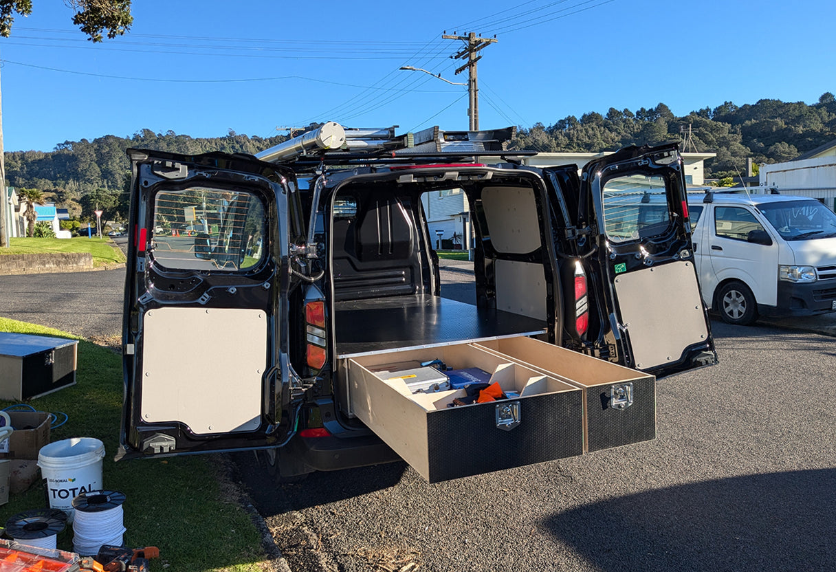 All van drawer systems are precision-cut, pre-assembled for easy installation in most New Zealand van models.